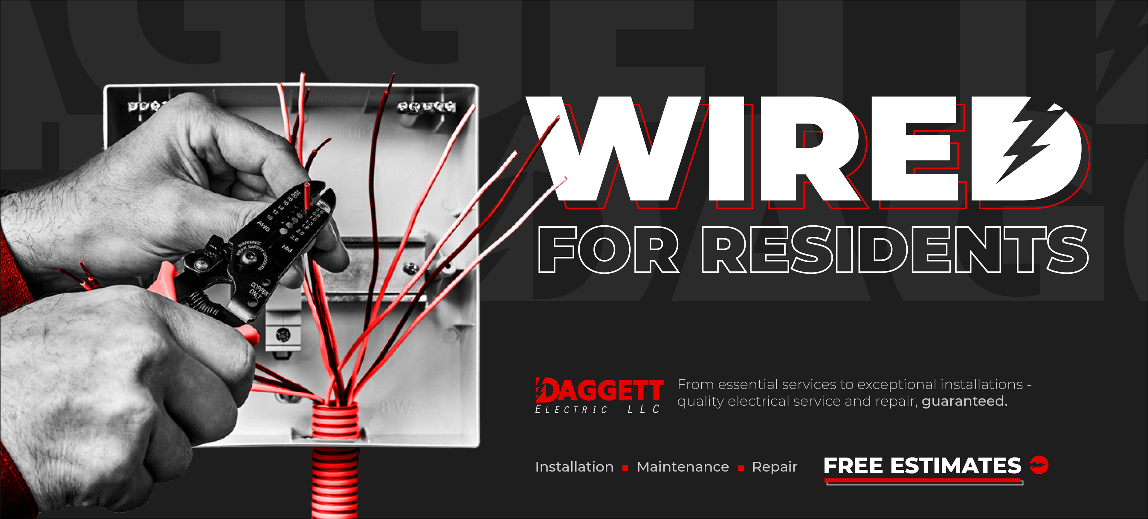 The first speaks to a more industrial, and typically male audience (black background pieces). The second speaks to the trust and comfort of knowing that Daggett is the right choice for all of a consumers home electrical needs.