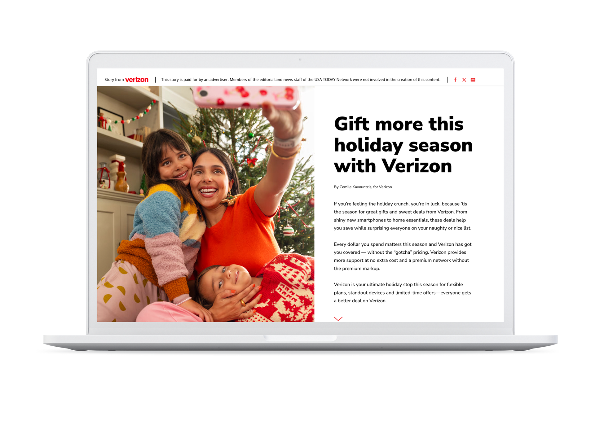 To help showcase their holiday offers Verizon came to us asking for a USA Today branded Interactive Holiday Gift Guide. The catch - they would be changing the offers halfway through the flight of the campaign, needed the page live within two weeks, and wouldn't know the products for a week.