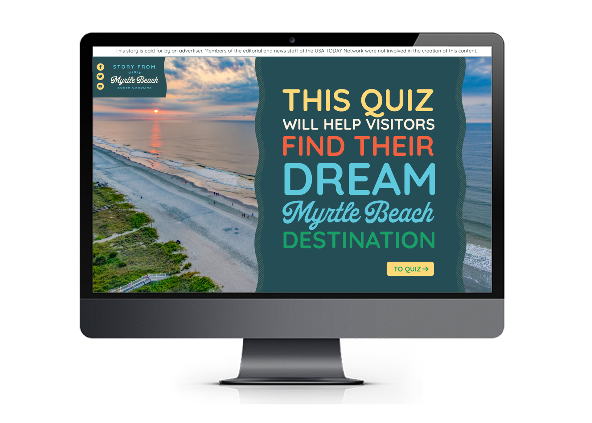 To help visitors find their perfect Myrtle Beach South Carolina vacation spot, a quiz was developed that takes in the users responses and then points them to one of three destination locations.